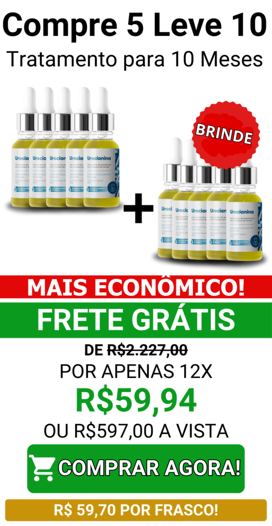 Não conseguimos manter essa promoção por muito tempo, pois os ingredientes do UROCIANINA são de altíssima qualidade e limitados. Além disso, alguns deles têm custos atrelados ao dólar, o que dificulta a reposição. Por isso, essa oferta especial só vai durar hoje. Assim que você sair dessa página, ela não estará mais disponível.